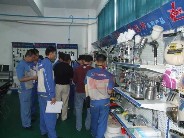 龍神講師向一汽馬自達的師傅介紹意大利威彩噴槍的優(yōu)點