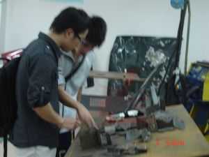 學長朱福鏢(現(xiàn)龍神實操技師)與社團成員交流實踐經驗