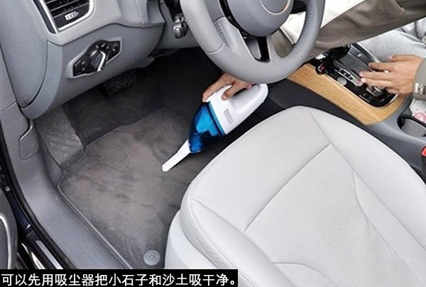 車輛的地面往往有很多沙土或小石子等臟東西,要把他們清理干凈,最簡單的方法就是用吸塵器。如果家里條件允許,可以使用家用吸塵器,因?yàn)檫@種吸塵器吸力大、效果明顯,而市場(chǎng)上經(jīng)??吹降能囕d吸塵器一般吸力比較小,用起來比較費(fèi)勁,但如果不具備使用家用吸塵器的條件,也只能用車載吸塵器將就一下了。