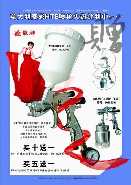 1、 買十送一(即一次購買十把HTE噴槍送一把HTE噴槍)
