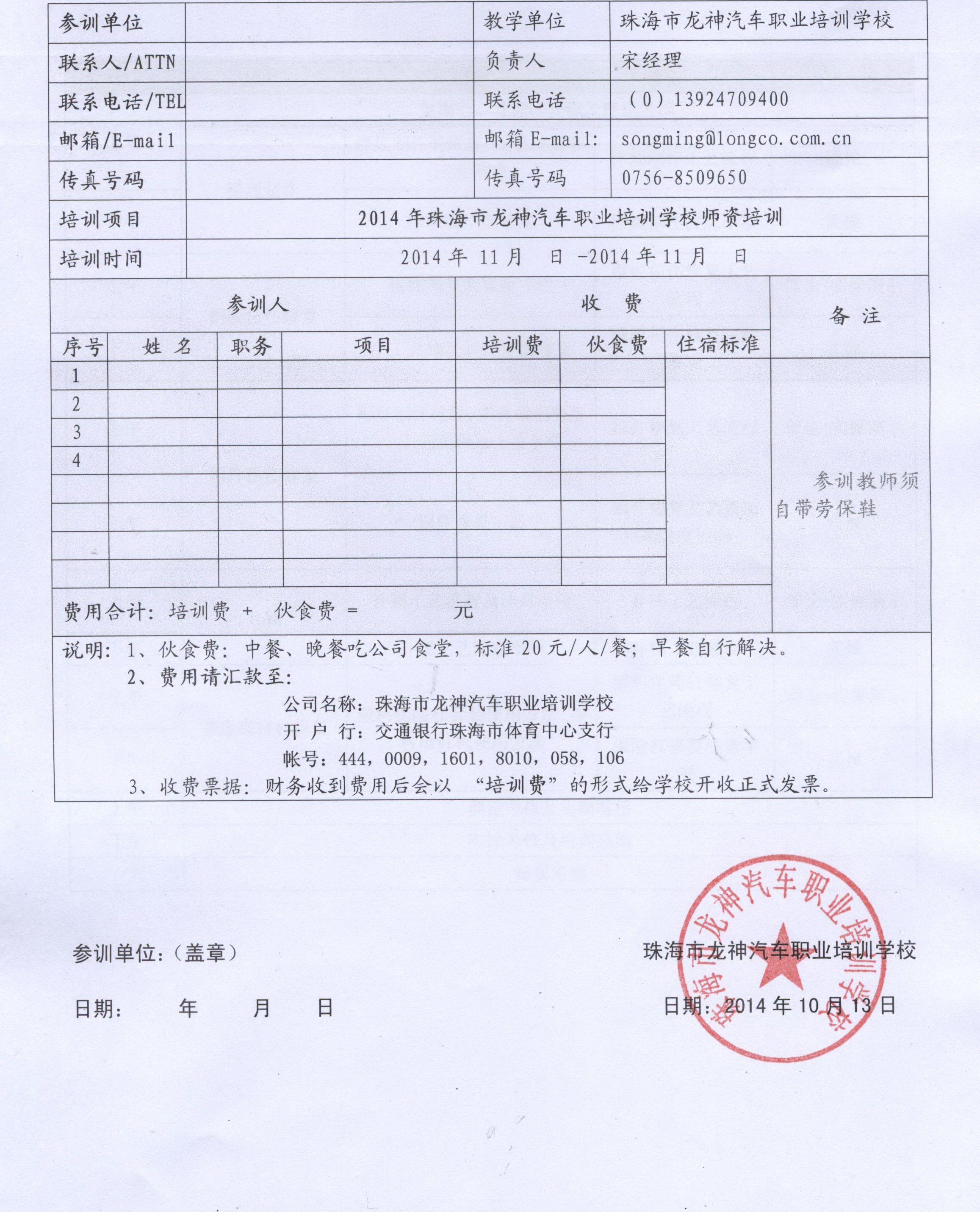 2、報名回執(zhí)表需在培訓開始前5日,回傳至我司。
