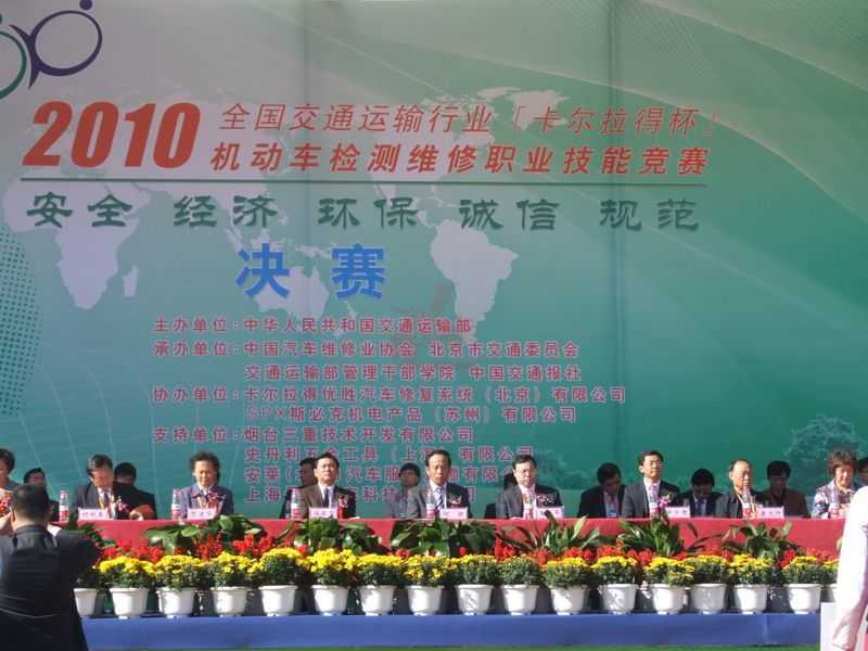 10月14日-15日,由交通運(yùn)輸部舉辦的全國交通運(yùn)輸行業(yè)“卡爾拉得杯”機(jī)動(dòng)車檢測(cè)維修職業(yè)技能競(jìng)賽決賽在北京交通運(yùn)輸部管理干部學(xué)院舉行。來自全國24個(gè)?。▍^(qū)、市)的238名選手參加了本次競(jìng)賽決賽。交通運(yùn)輸部副部長馮正霖出席開幕式并宣布決賽開始,競(jìng)賽組委會(huì)主任、交通運(yùn)輸部人事勞動(dòng)司司長兼評(píng)價(jià)中心主任何捷講話。本次競(jìng)賽活動(dòng)龍神公司設(shè)立產(chǎn)品展覽攤位,展出包括競(jìng)賽產(chǎn)品在內(nèi)共計(jì)100余件,得到了領(lǐng)導(dǎo)及院校的一致好評(píng)。