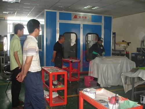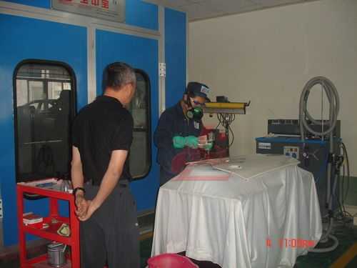 青島城陽(yáng)職校參賽選手在龍神經(jīng)過(guò)一個(gè)月緊張有序的賽前強(qiáng)化培訓(xùn)后,彭總親臨現(xiàn)場(chǎng)了解他們賽前培訓(xùn)情況,選手們訓(xùn)練有素,各種工具準(zhǔn)備、動(dòng)手操作一氣呵成,噴槍、鈑金快修、干磨系統(tǒng)的使用,樣樣工具設(shè)備用起來(lái)得心應(yīng)手,表現(xiàn)出選手們?cè)鷮?shí)的基本功,熟練的鈑噴操作程序讓彭總贊嘆他們訓(xùn)練的成果,選手們對(duì)參加全國(guó)競(jìng)賽信心倍增.