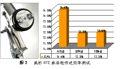 吉尼斯HTE高霧化噴槍采用科學(xué)的霧化通道設(shè)計(jì)和精密的霧化孔徑加工工藝,只要2bar的壓力按照傳統(tǒng)使用條件,就可以噴出卓越的霧化效果,而且耗氣量只有290-340/分鐘,油漆傳遞效率高達(dá)70%以上(見圖2),大大降低了飛濺漆霧對人員及環(huán)境的危害,降低噴漆車間的營運(yùn)成本,是真正的節(jié)能環(huán)保產(chǎn)品。