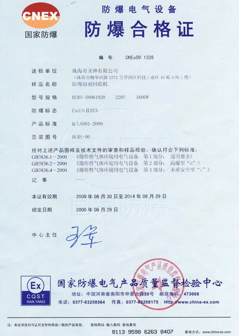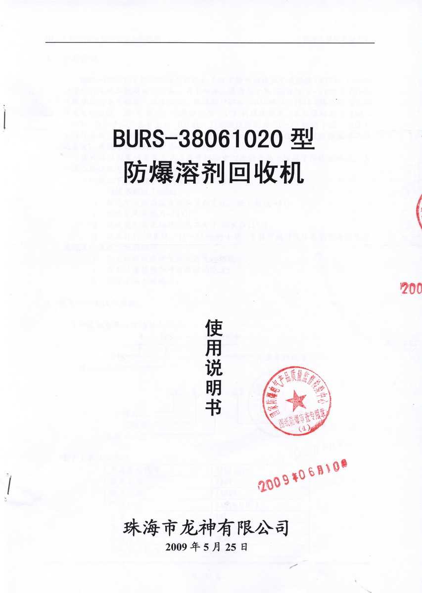 防爆認(rèn)證 防爆溶劑回收機(jī)防爆合格證 BURS系列防爆溶劑回收機(jī)技術(shù)條件 BURS-38061020型防爆溶劑回收機(jī) 使用說(shuō)明書(shū) BURS-38061020型防爆溶劑回收機(jī) 圖紙資料 (以上圖片均可點(diǎn)擊放大) 2012-11-27 34501