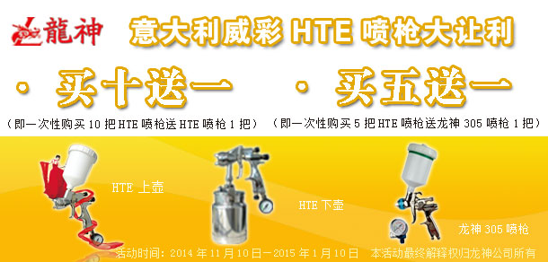 2、買(mǎi)五送一(即一次購(gòu)買(mǎi)五把HTE噴槍送一把龍神305噴槍?zhuān)?