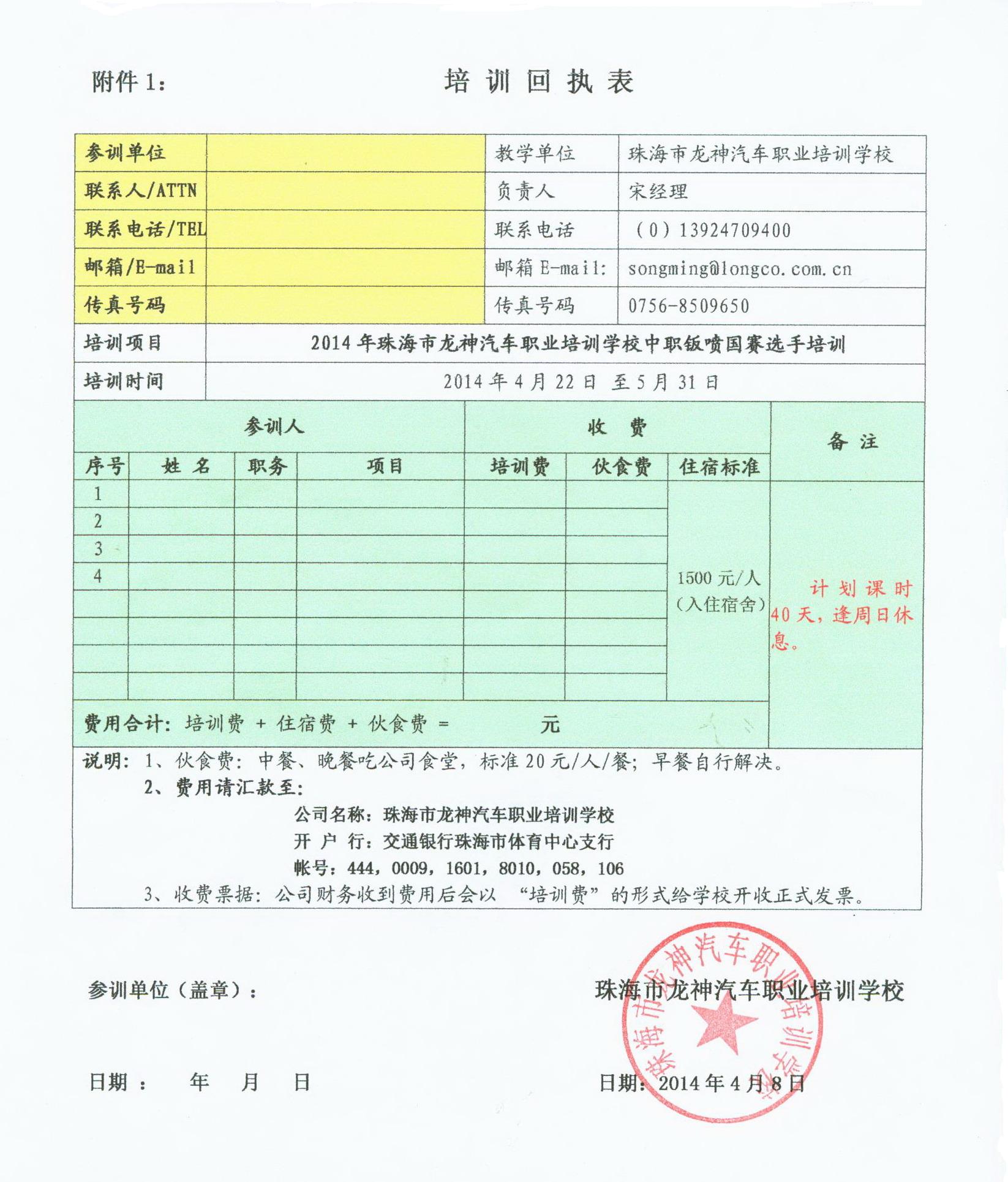 2014年度珠海市龍神汽車職業(yè)培訓(xùn)學(xué)校暑期師資培訓(xùn)知會(huì)函