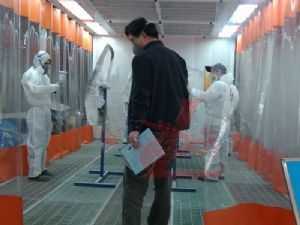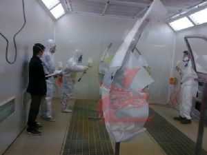 24日上午8點30分,比賽正式拉開戰(zhàn)幕。各代表隊選手統(tǒng)一著裝龍神贊助的鈑噴防護用品,全身心地投入到比賽中去。選手們訓(xùn)練有素,工具準(zhǔn)備、動手加工一氣呵成,扳手、噴槍,樣樣工具用起來得心應(yīng)手,表現(xiàn)了參賽選手們良好的精神風(fēng)貌、扎實的基本功。